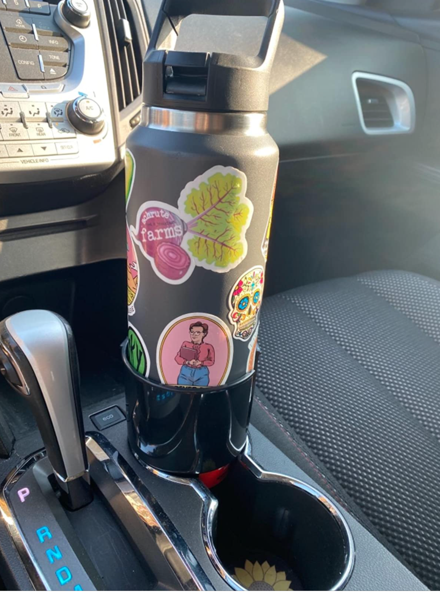 A extra-large car cup holder for holding water bottles