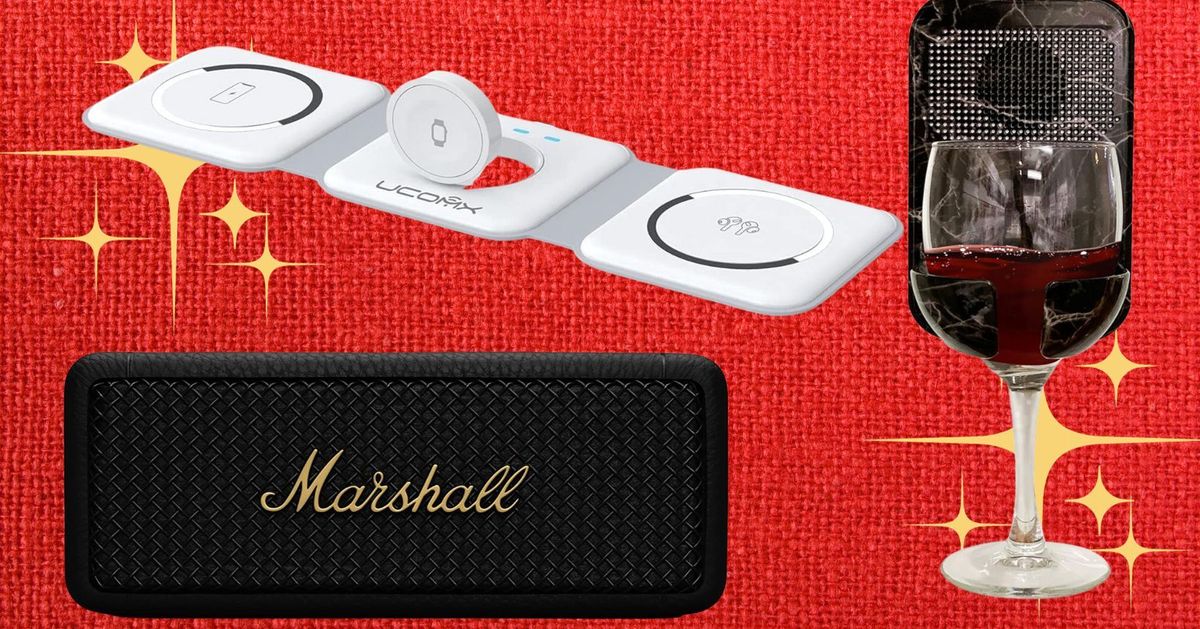 A marble print wine holder that’s also a Bluetooth speaker