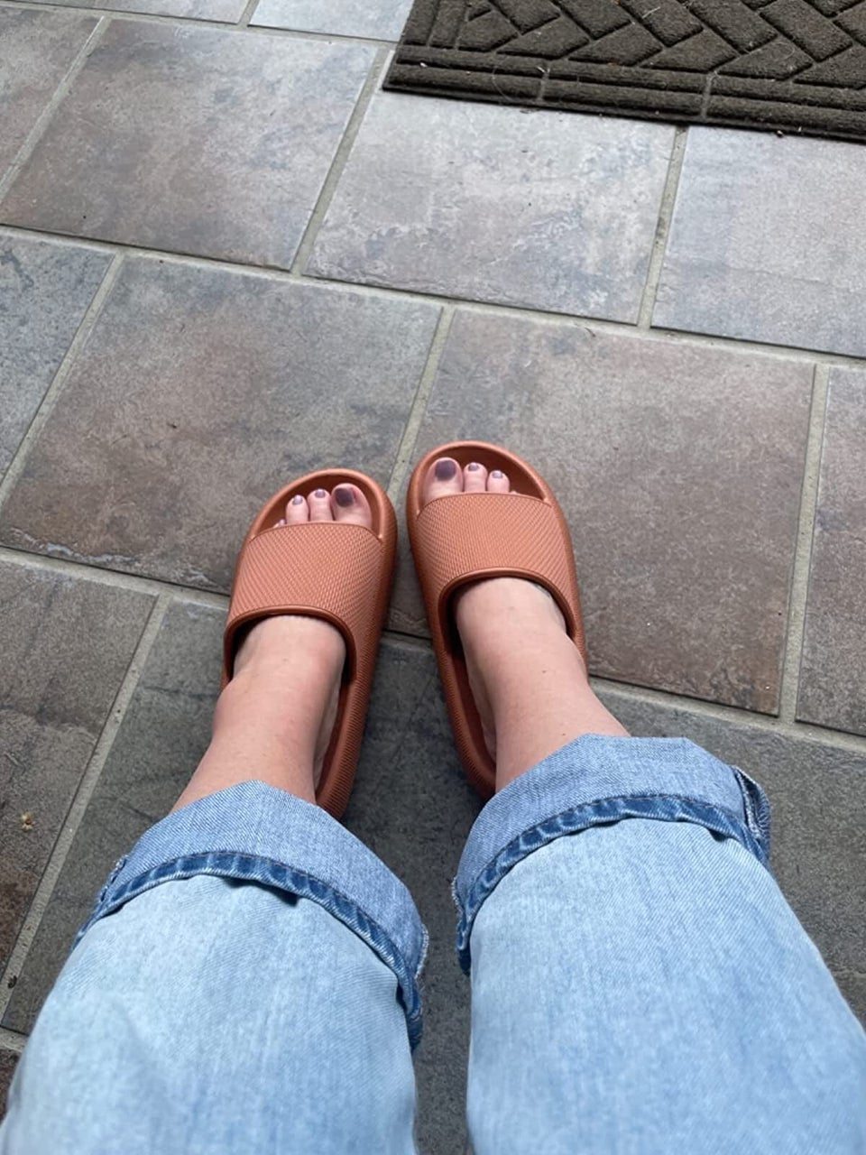 “Let me tell you!! These slides are seriously the best slides. Slides typically aren’t my first choice, however after seeing so many reviews on TikTok and Instagram I decided to order some. I’ve had them almost two months and have worn them quite often, no complaints! 10 out of 10 recommend!!! I got them in black, they are so comfy, and I definitely plan on ordering in more colors!” — Ashleigh P