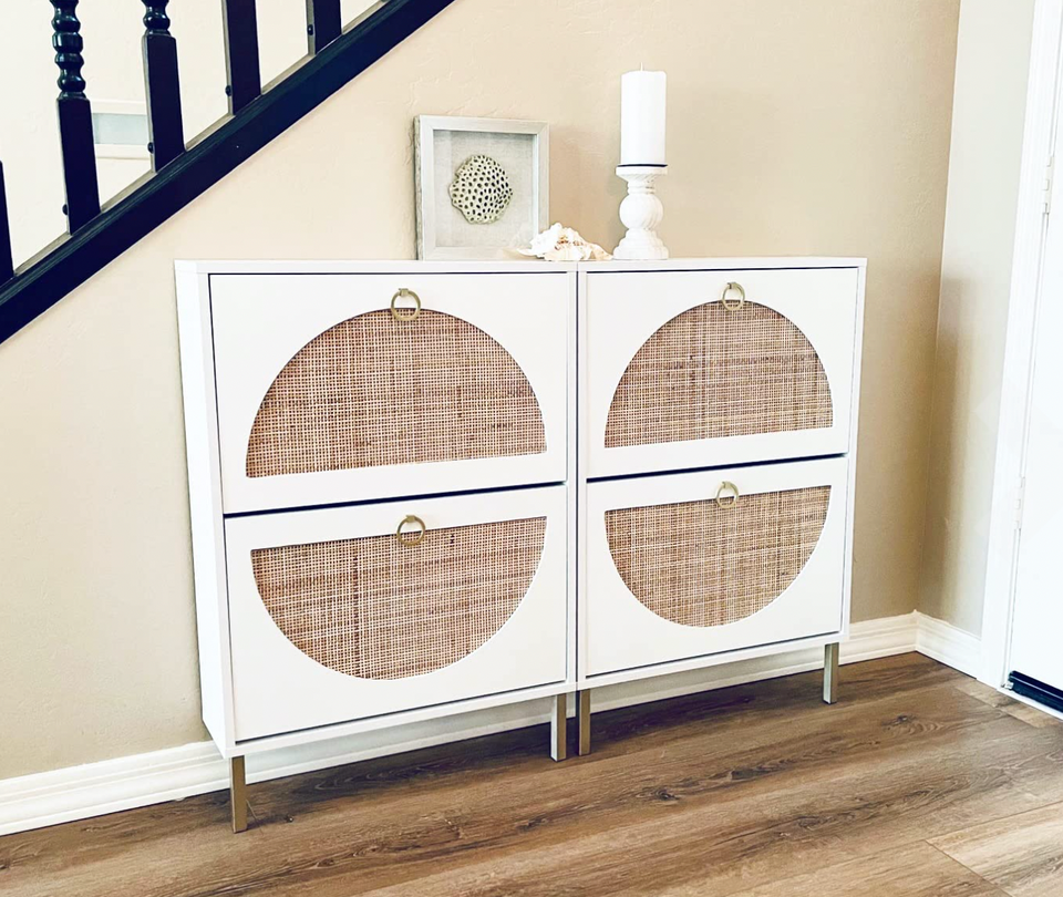 Promising review: “Love the shoe storage. Mostly bought for the look, not practicality. These fit sandals/anything flat like Birks, running shoes, and Air Forces fine, but anything taller won’t fit. Six shoes total for one cabinet fit. Would buy again. Does as advertised and easy on the eyes.” — mmaj