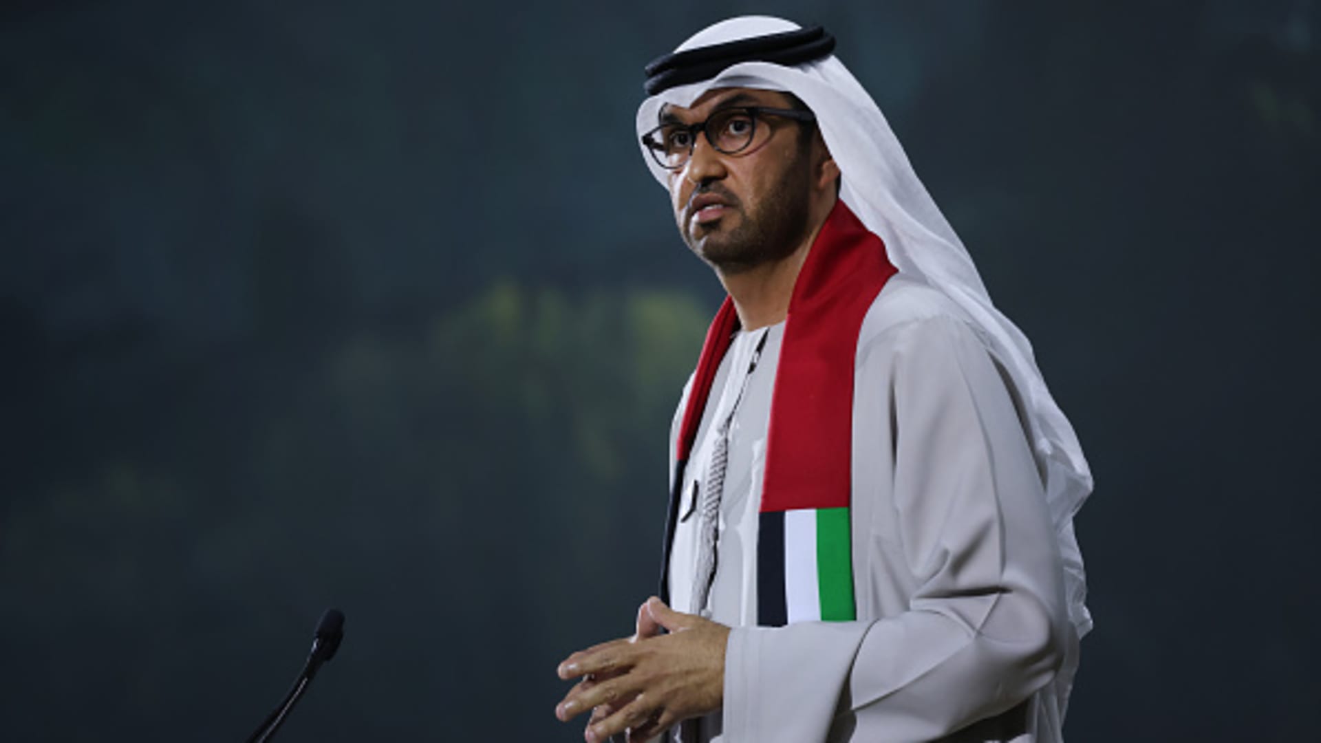 Sultan al-Jaber, president of the UNFCCC COP28 climate conference, speaks during day two of the summit on Dec. 2, 2023 in Dubai, United Arab Emirates.