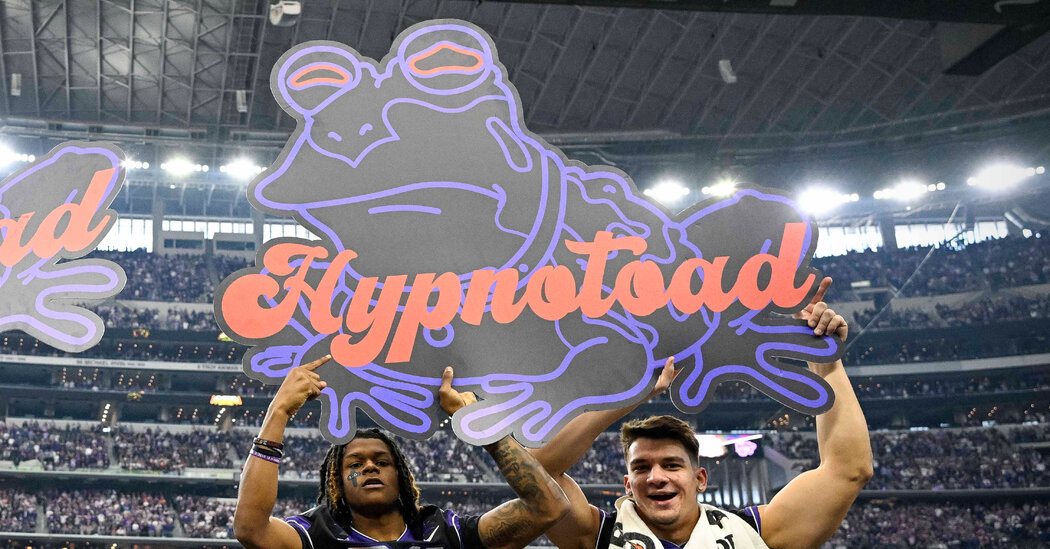 The Horned Frogs, who are the first school from Texas to participate in the four-team playoff, which began in 2014, and the second to do so after starting the season unranked, could hardly be more unlikely to have landed here. The same goes for their omnificent talisman, which was hatched far away from the football-mad state of Texas — in the comedic laboratory that is a Hollywood writers’ room.