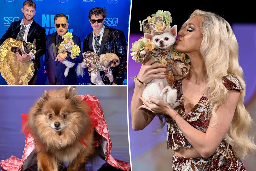 The animal catwalkers wore a variety of fashionable outfits, from jackets and capes to hats and glasses — which featured intricate detail, tulle and sparkles.