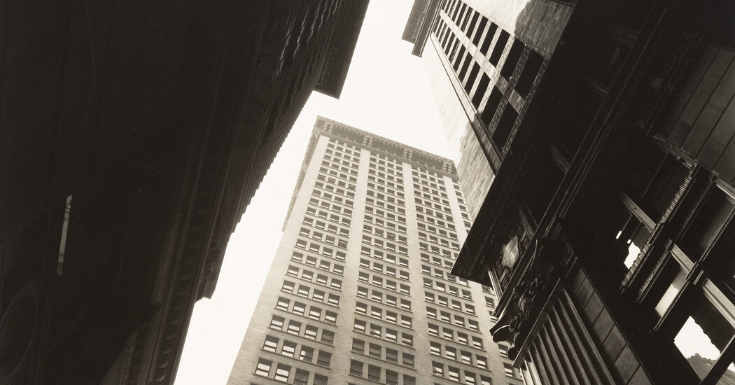 The Met’s exhibition incorporates several Atget photographs from the museum’s collection, including one that Abbott was known to admire; it shows an early automobile garage in the Fifth Arrondissement, with a Renault parked in a cobblestoned courtyard. A similar appreciation for the collision of the newfangled with the outmoded can be seen throughout Abbott’s “New York Album,” in shots of skyscrapers looming over rows of tenements and, in one more subtle and almost surreal case, an overhead view of an equine statue photographed from the Ninth Avenue El.