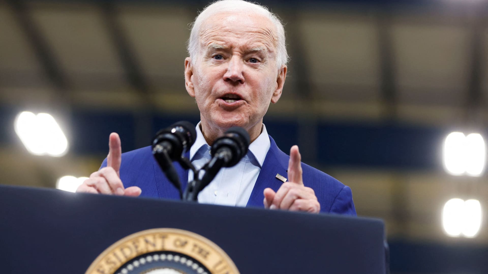 U.S. President Joe Biden delivers remarks on the economy at Arcosa, a wind tower manufacturing facility, in Belen, New Mexico, August 9, 2023.
