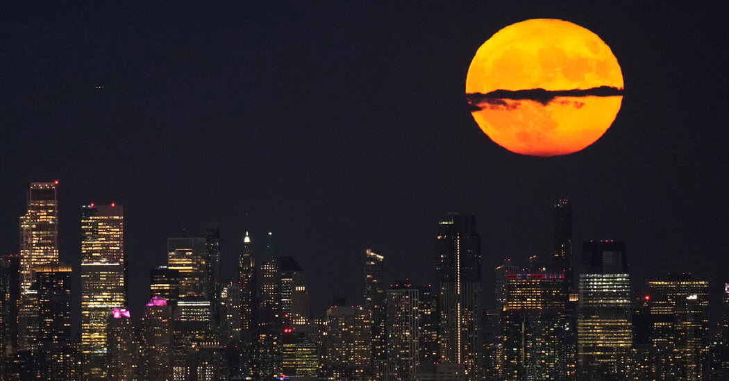 In the United States, the moon will appear full on Tuesday, Wednesday and Thursday night. On Wednesday evening, you might also spot a bright dot to the upper right of the moon. That’s Saturn, a few days shy of reaching its closest point to Earth. The ringed planet will swing clockwise around the moon during the night.
