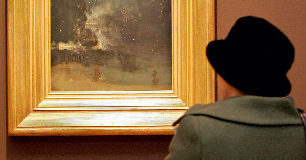 “I have seen, and heard, much of Cockney impudence before now; but never expected to hear a coxcomb ask 200 guineas for flinging a pot of paint in the public’s face.” These words by John Ruskin, Victorian England’s pre-eminent critic, were written in 1877 about “Nocturne in Black and Gold — The Falling Rocket,” a painting by James Abbott McNeill Whistler, the most flamboyant artist of that era.