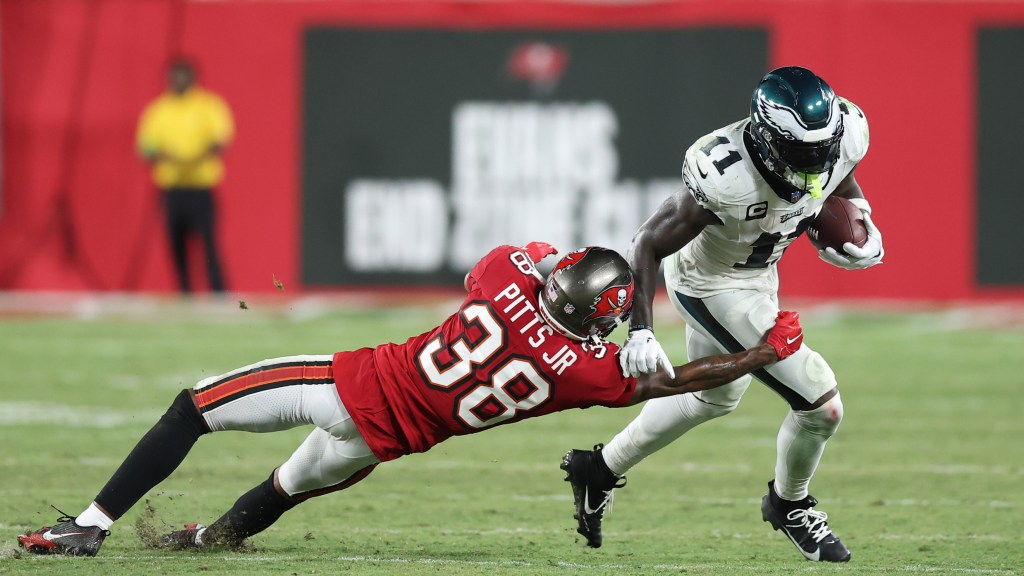 Pitts has mainly been used in a special teams role, but he saw some cornerback action in Week 3 when the Bucs played him against the Philadelphia Eagles due to injury. In that game, Pitts recorded two solo tackles.