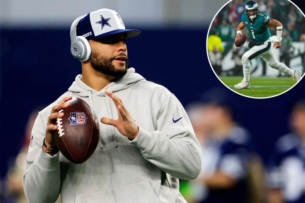 The game, too, pits two quarterbacks, Jalen Hurts from the Eagles and Prescott, who are two of the favorites to win the NFL MVP award, along with San Francisco quarterback Brock Purdy.