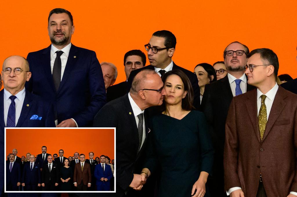 Baerbock, 42, politely offered Grlic Radman her cheek and turned straight toward the cameras before uncomfortably giggling, video of the cringey encounter shows.