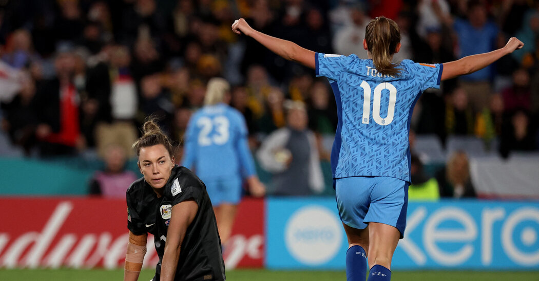 Mary Earps, England’s goalkeeper, scrambled to cover it. She could not. The ball was traveling too fast. In the semifinal of a World Cup, Kerr had delivered. Australia, the team and the stadium and the country, had its moment. In the crowd, the working assumption was that there would be many more. This was all too perfect, as though it was all following a script.