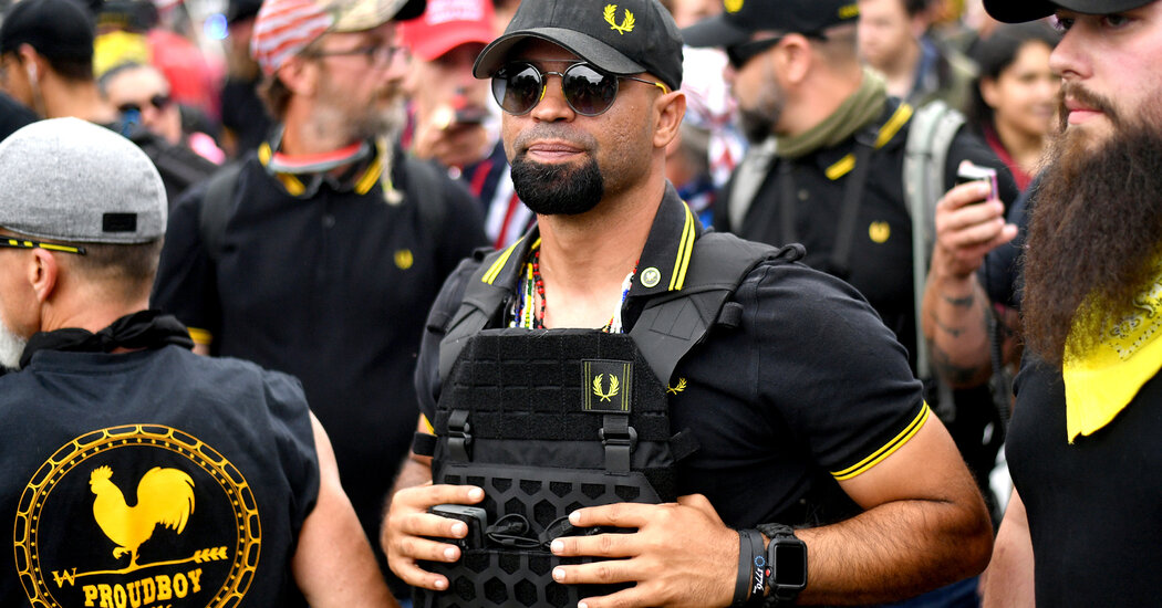 For Mr. Tarrio, 39, the sentence ended a brief but belligerent career as a prominent force among far-right groups during a period when they moved from the fringes toward the center of conservative politics. Mr. Tarrio was in charge of the Proud Boys, which has long espoused a kind of violent patriarchal nationalism, when Mr. Trump famously called it out during a presidential debate against Joseph R. Biden Jr., telling its members to “stand back and stand by.”
