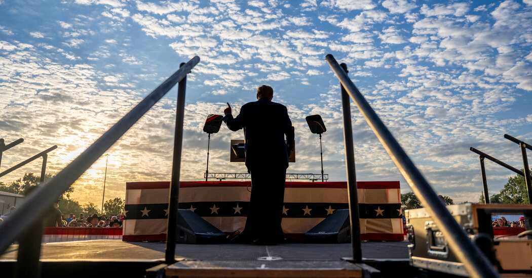 At a campaign rally in Houston on Thursday that opened with former President Donald J. Trump erroneously referring to jailed Jan. 6 Capitol riot defendants as “hostages,” the Republican primary front-runner used a series of false and misleading claims to make his case for another term in the White House.