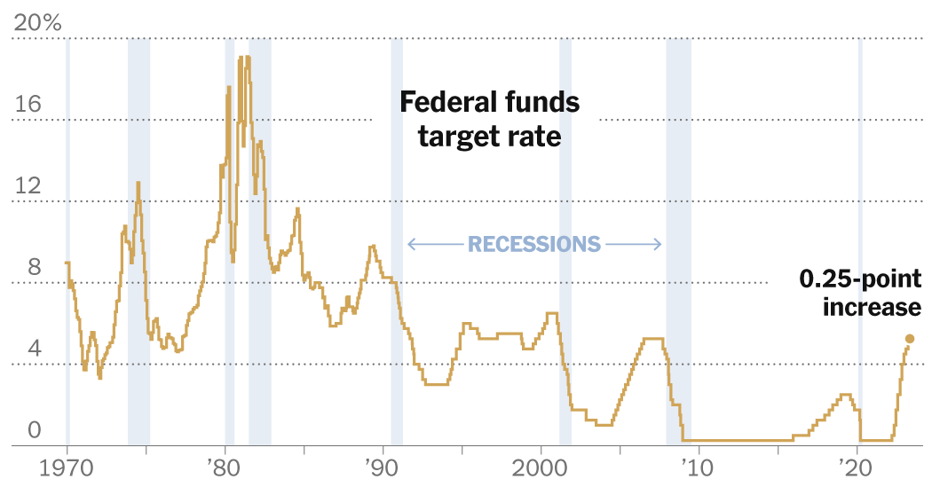 The Fed last raised its benchmark rate, the federal funds rate, in July to a range of 5.25 to 5.5 percent. A series of rate increases that began in March last year was intended to rein in inflation, which has cooled but remains elevated, leading Fed officials to suggest that they will keep rates high for a prolonged period of time.