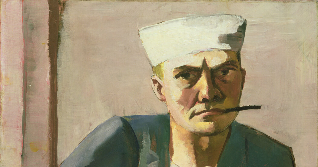 Yet a real vigor emerges in this show — curated by the historian Olaf Peters, who also put together the Neue’s impressive exhibitions on Weimar Berlin and on painting and politics in the 1930s — as it moves from the war years (staged in a prologue on the second floor) into the 1920s (in the main exhibition galleries on the third). In small woodcuts and drypoint etchings of the early 1920s, the shallow spaces and hard angles Beckmann initially applied to Christian motifs get redeployed for portraits, party scenes and acid views of Weimar society. Look at “In the Tram,” a Berlin public transport etching from 1922 and one of many scenes Beckmann made of departures and arrivals. A woman at left crosses her bony hands. A grown man at right is sucking his thumb. At center is a war veteran, whose low-slung homburg casts a shadow over his heavy eyes: a dark band that contrasts with the white gauze wrapping his absent nose.
