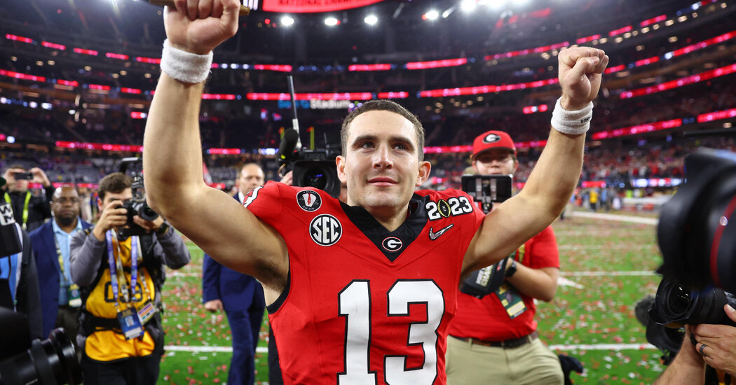 Georgia, which rolled up 589 yards, did not punt until the second half — long after televisions surely had clicked off around the country. And with the way the Bulldogs continued to parade into the end zone and tee off on Max Duggan, the T.C.U. quarterback, it was a wonder that officials didn’t order a running clock for the final quarter.