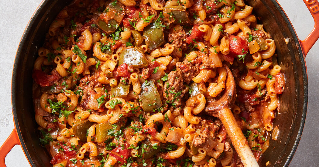 Good morning. Lidey Heuck gave us a new recipe for goulash (above) that’s an Americanized take on the great Hungarian stew, with paprika-scented ground beef, bell peppers, diced tomatoes, macaroni and a healthy sprinkle of Cheddar stirred in at the end.