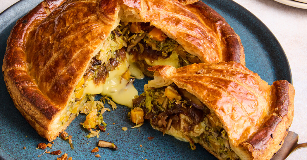 Then there’s her brand-new baked Brie and caramelized vegetable pie, which is far less work but no less impressive. Mushrooms, butternut squash and brussels sprouts — all stars of a strong Thanksgiving spread — are tucked around a round of creamy cheese with a red onion jam and swaddled in puff pastry. The vegetables can be prepared a couple of days ahead, so all you have to do on the big day is fill, wrap and bake. I’ve been lucky enough to eat it twice already ahead of the holiday, and I can’t get its cornucopia of savory flavors out of my head.