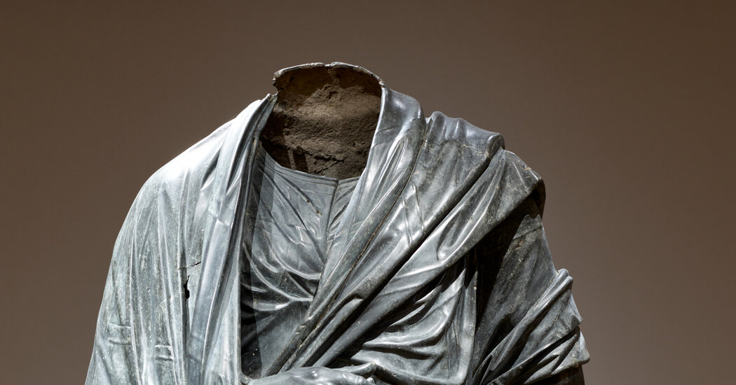 But several weeks ago, the museum removed the earlier references to Turkey and Aurelius and changed the website to read: “Draped Male Figure, c. 150 BCE-200 CE,” adding, “Roman or possibly Greek Hellenistic.” It also altered the language of its accompanying description to read “without a head, inscription, or other attributes, the identity of the figure represented remains unknown.”