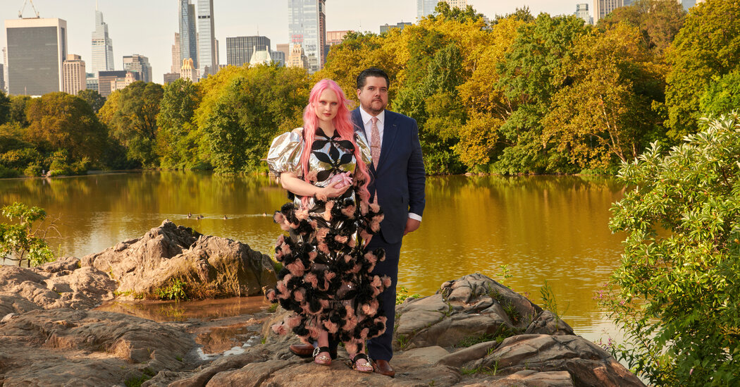 In early July, the two had traveled to the Brittany region of France to have a symbolic elopement. Ms. Bateman said, “I wore two very extreme dresses from the designer Noir Kei Ninomiya’s runway collections and an equally extreme Simone Rocha veil.”