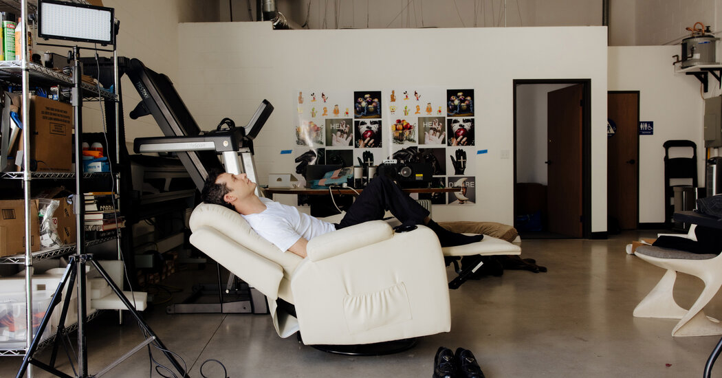 Born in New York and educated at the Rhode Island School of Design, where he received a B.F.A. in 2003, Wolfson entrenched himself in the art world in the early aughts, quickly establishing a reputation as a provocateur who agitated liberal sensibilities. Perhaps his most famous — and controversial — work is “Real Violence,” which appeared at the Whitney Biennial in 2017. To experience it, viewers donned a virtual-reality headset and noise-canceling headphones to watch, over the course of about two and a half minutes, a man in a gray T-shirt armed with a baseball bat (a facsimile of the artist himself) beat another man (a CGI-enhanced dummy) until his head bursts open with grim realism. A third man, unseen but audible through the headphones, sings two Hebrew prayers over the course of this bloodletting (Wolfson is Jewish). “We live in a complex world,” Wolfson said during a visit to his studio in October. “I’m simply trying to make art about the times we live in. And I find the times we live in to be terrifically violent and quite honestly terrible.”