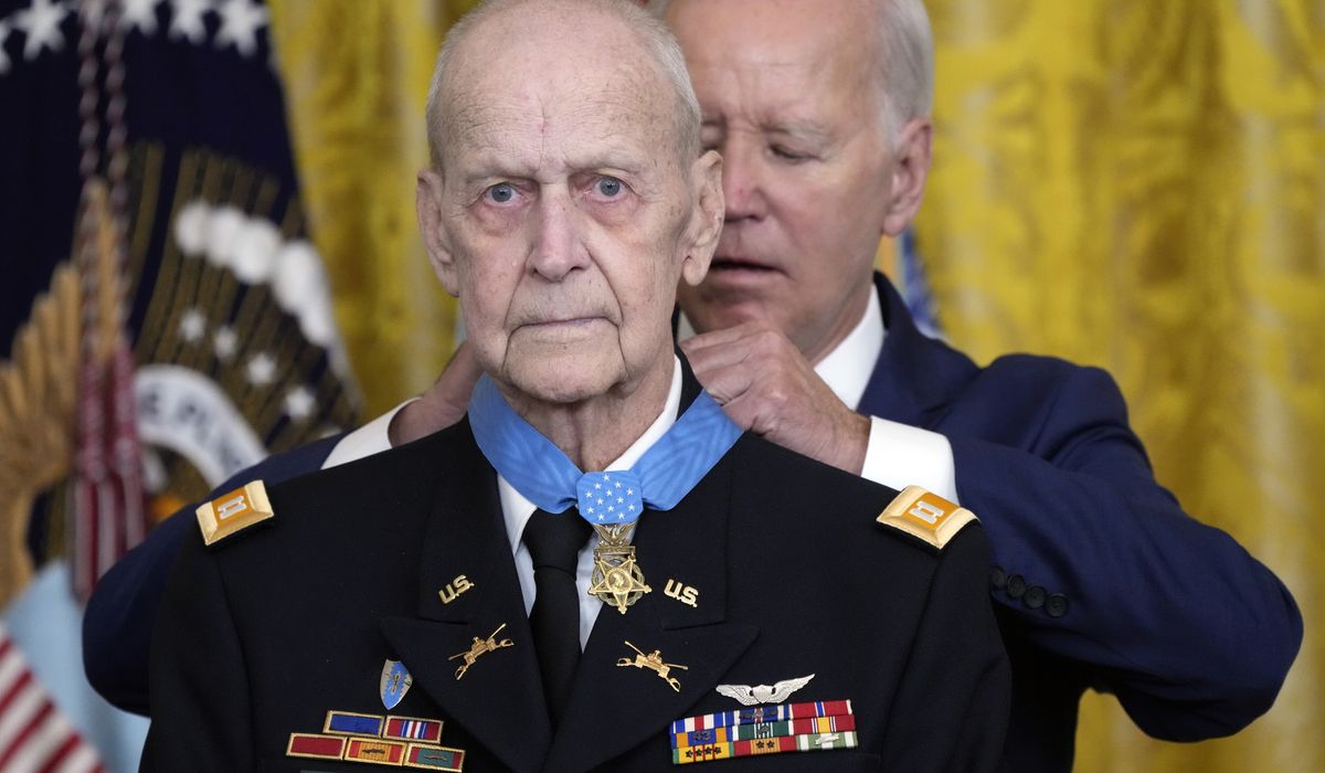 President Biden awarded the Medal of Honor on Tuesday to a Vietnam War Army helicopter pilot who scrambled to perform a daring rescue of four soldiers surrounded by heavy enemy fire and facing almost certain death.