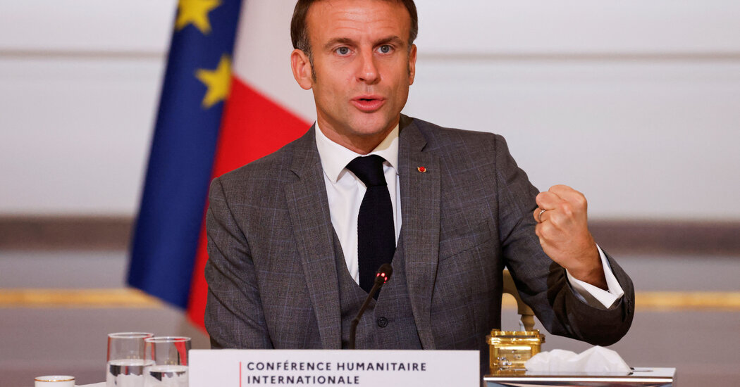 Against a backdrop of mounting international outrage over civilian casualties as Israel wages war on Hamas, President Emmanuel Macron of France on Friday called on Israel to stop the killing in Gaza.