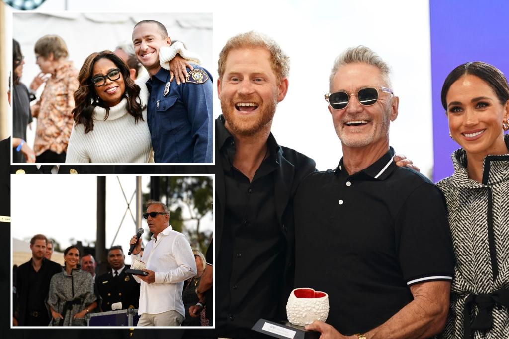 The couple — who have just returned from the Invictus Games in Germany — appeared in their element as they hobnobbed with fellow guests Oprah Winfrey and Ellen Degeneres at the event, held at Kevin Costner’s $26 million estate.