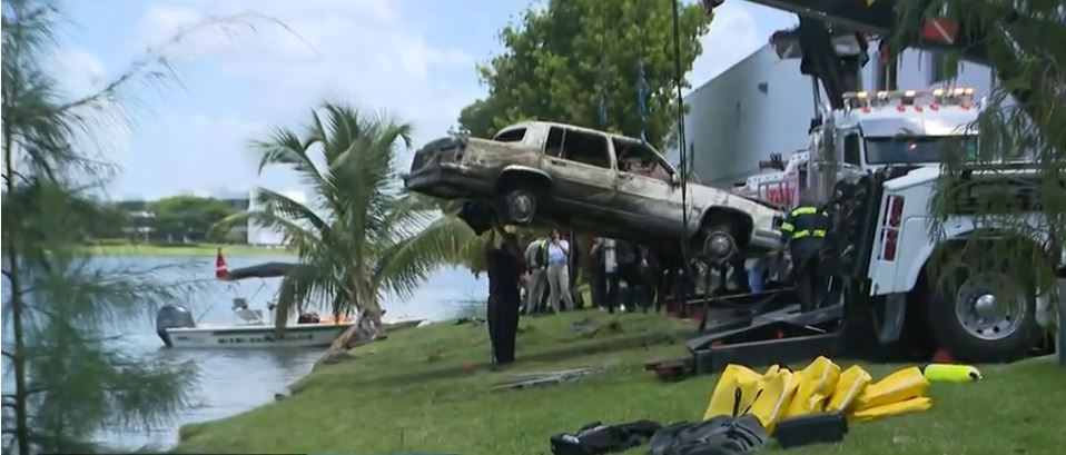 Doral police said Sunday that they were alerted to the cars after the volunteer dive team, United Seach Corps, conducted a search of the lake over the water.