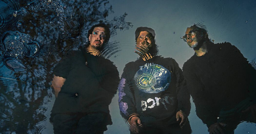 I met the New Red Order members in the Lower East Side offices of Creative Time, the nonprofit organizing the UnFair. The Khalils favor oversize graphic T-shirts, Polys a collared button-down, graying hair pulled back. The three artists convey a wry delight in the world, even the bleak parts, down to the cigarettes they smoke: “Native” American Spirits. At one point, Adam grabbed a bottle of cold brew coffee on the table and read the label: “Only natural ingredients. Settling may occur.” Everyone laughed.