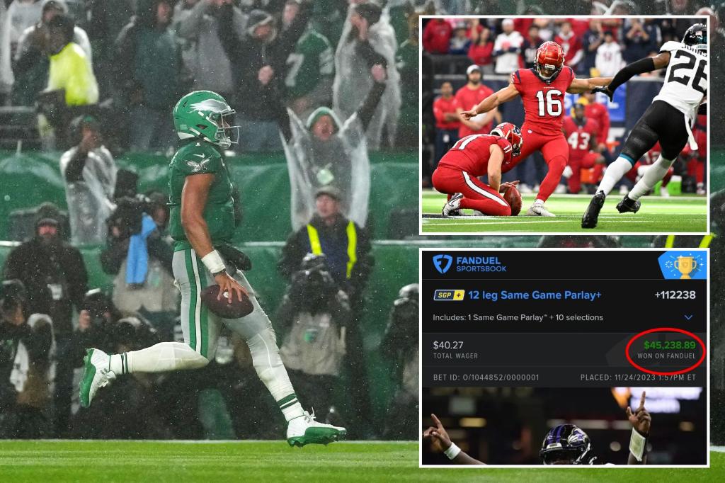 The bettor nailed all 11 games on Sunday and turned in a $40.27 bet to make $45,238.89 on FanDuel Sportsbook.