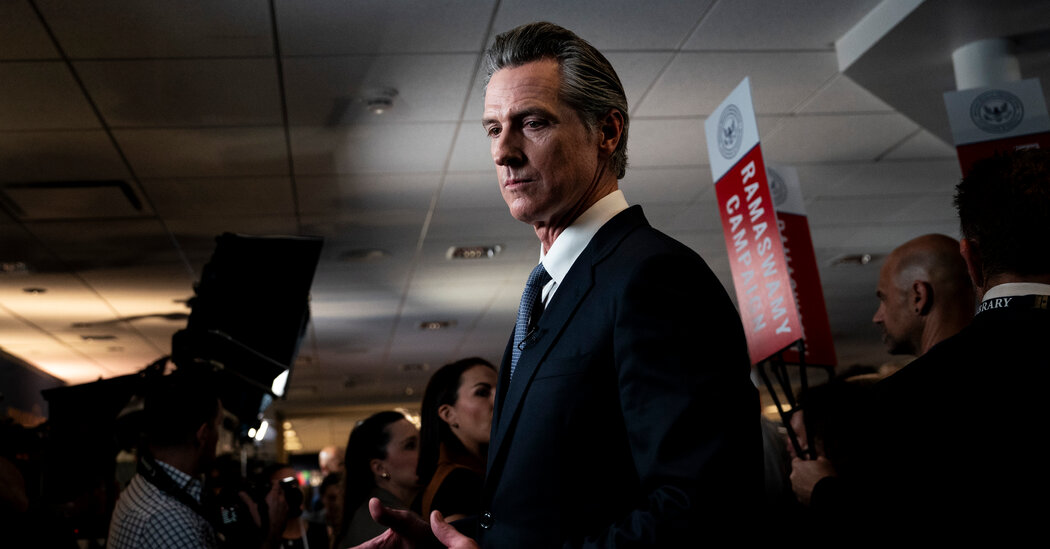 For much of Wednesday evening, Gavin Newsom, the Democratic governor of California, drew nearly as much attention at the Ronald Reagan Presidential Library and Museum in Simi Valley, Calif., as the Republican presidential candidates who were there for their second debate.