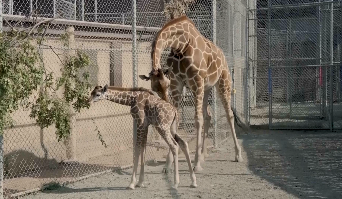 The Oakland Zoo in California is celebrating a new addition to the giraffe herd.