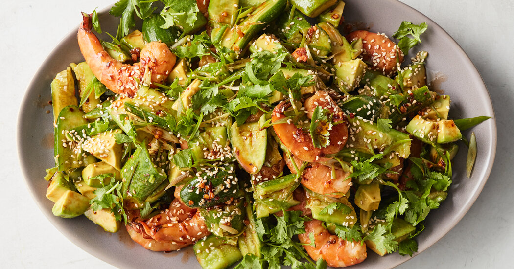 Here, I add cubed avocado for creaminess and body, and sesame seeds for crunch. For protein and heft, I tossed in some shrimp, which turns a side dish into a light summer meal.