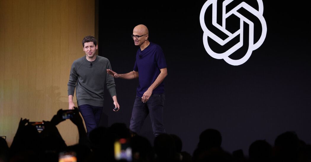Satya Nadella, Microsoft’s C.E.O., has been on a media tour since hiring the now-ousted OpenAI boss Sam Altman and Greg Brockman, another co-founder, and trying to cement its position as an artificial intelligence leader. One big talking point: how the company structured its deal with the start-up and access to its intellectual property.