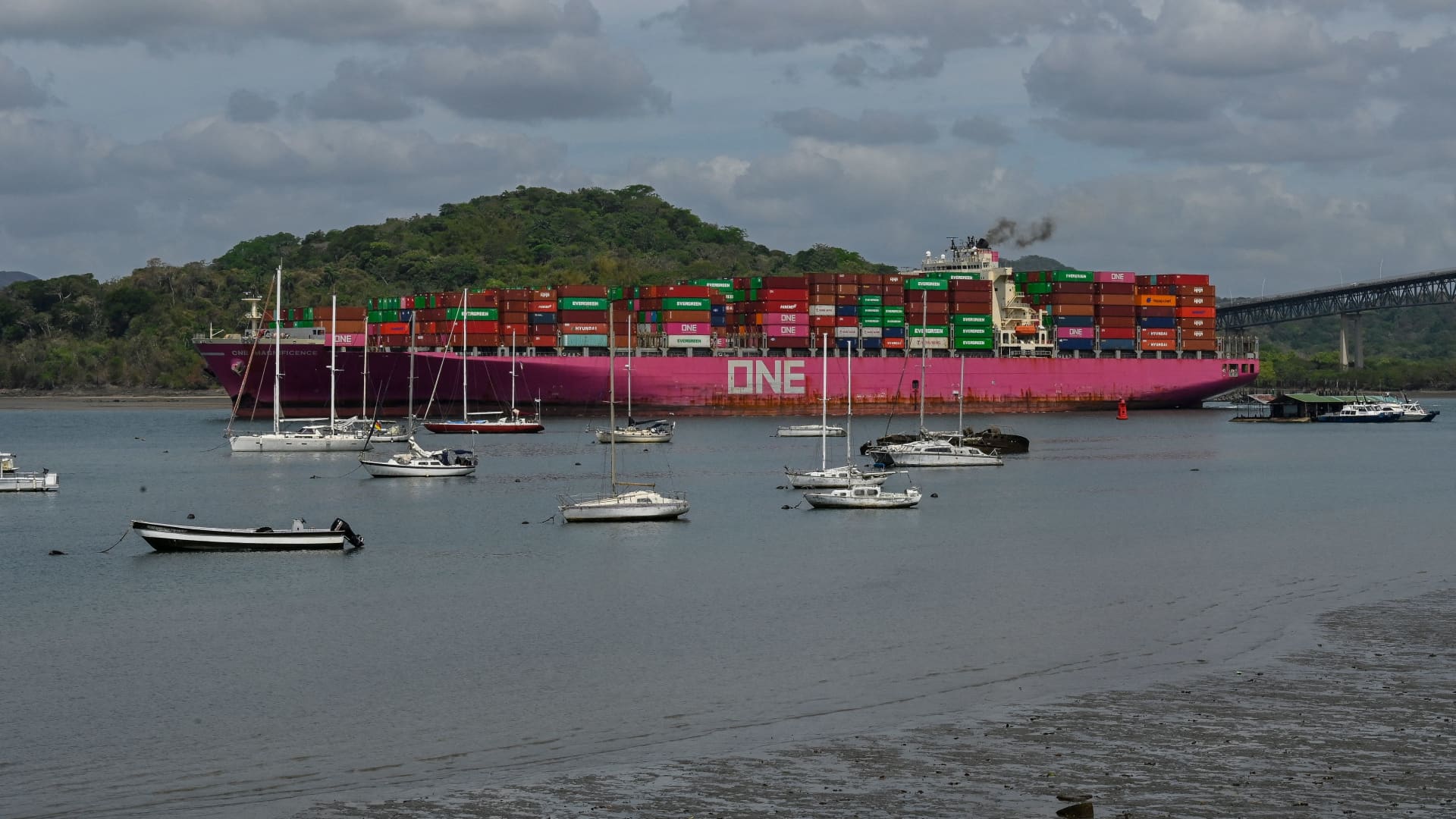 A ship navigates through the Panama Canal in the area near the Americas’ Bridge in Panama City on April 24, 2023. The scarcity of rainfall due has forced the Panama Canal to reduce the draft of ships passing through the interoceanic waterway, in the midst of a water supply crisis that threatens the future of this maritime route.
