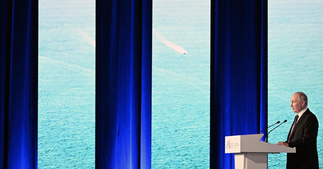 The setting was an economic conference in far eastern Russia, with discussion of the ruble and domestic investment, but that didn’t stop President Vladimir V. Putin from wading into American politics on Tuesday, branding the criminal cases against Donald J. Trump political persecution and praising the billionaire entrepreneur Elon Musk.