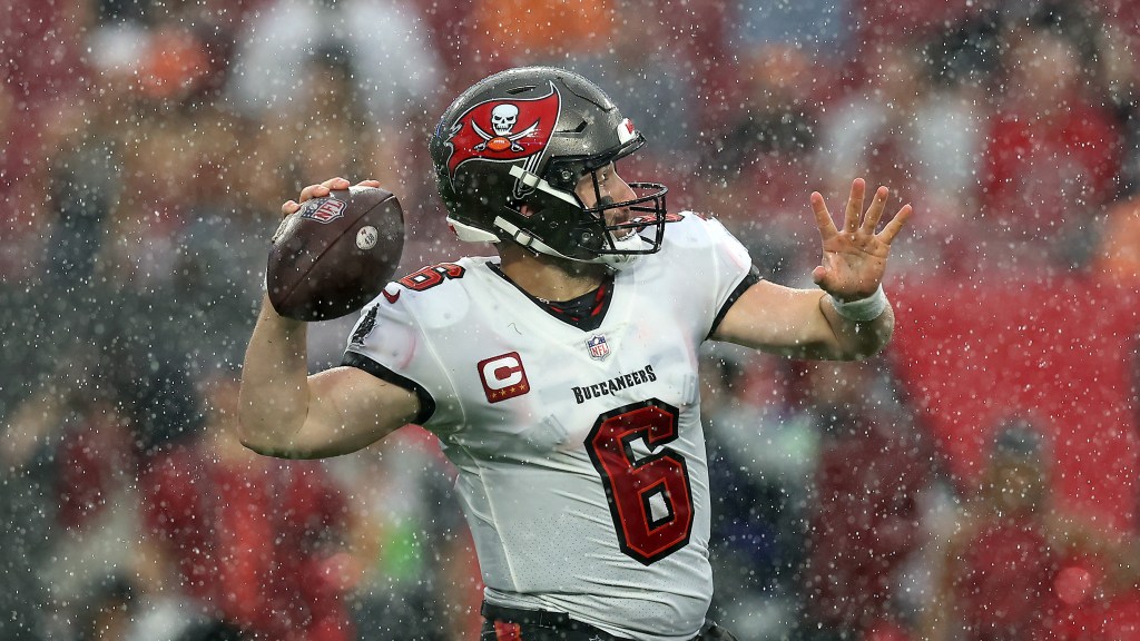 Dec 3, 2023; Tampa, Florida, USA; Tampa Bay Buccaneers quarterback Baker Mayfield (6) drops back to…