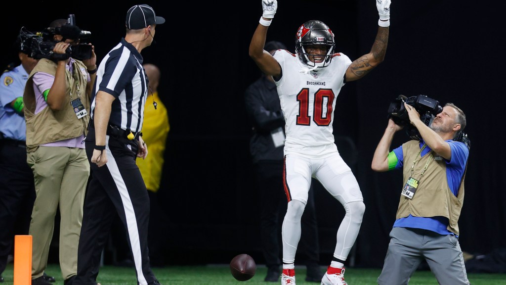 Oct 1, 2023; New Orleans, Louisiana, USA; Tampa Bay Buccaneers wide receiver Chris Godwin (14) poses…
