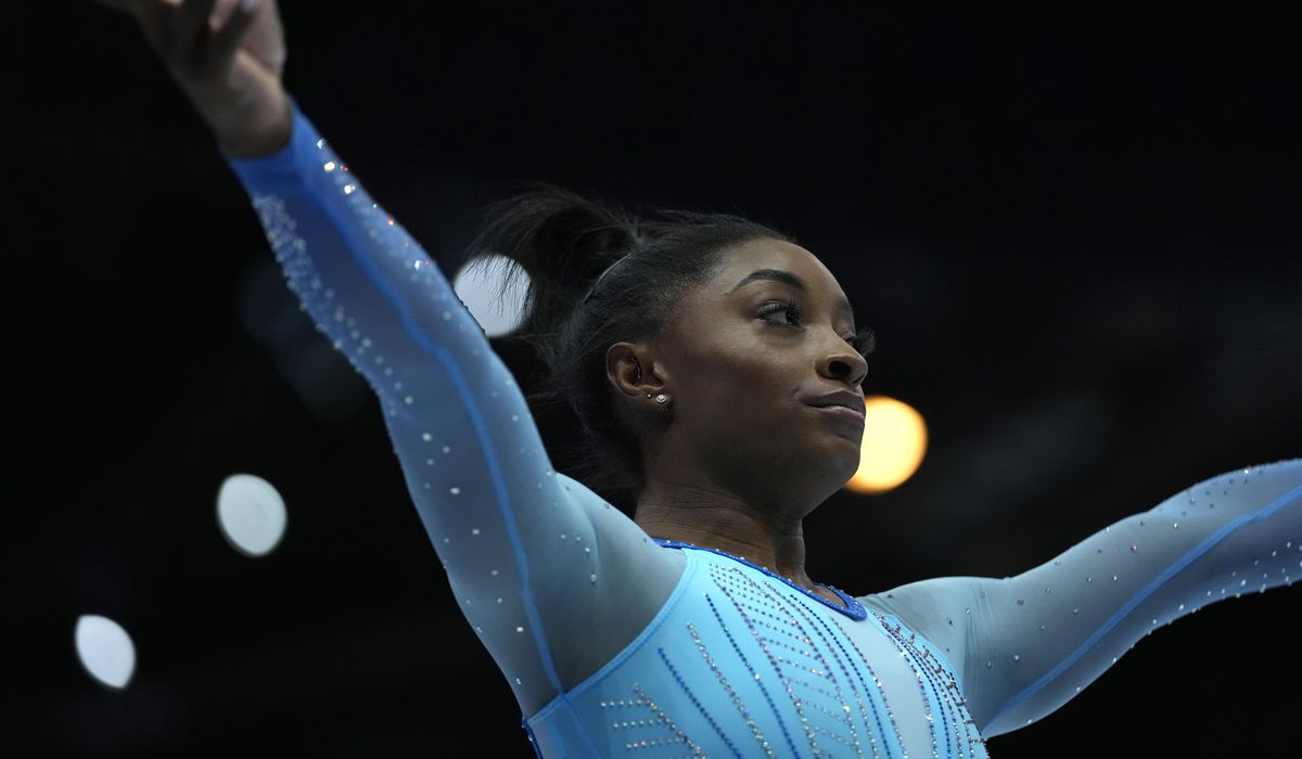 ANTWERP, Belgium (AP) — Simone Biles led a dominant performance by the U.S. women at the world gymnastics championships, posting an all-around total of 58.865 to lead qualifying through two subdivisions Sunday.