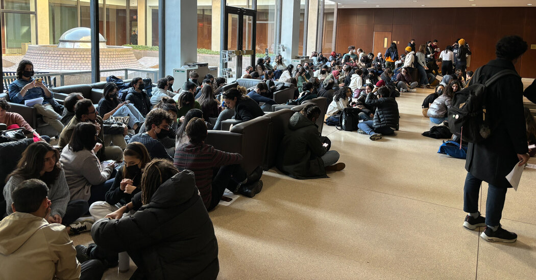 The demonstrators, who sat quietly in a common area in the International Affairs Building — many of them in face masks — were protesting what they perceived as the school’s role in publicly shaming students whose photographs appeared last week on the video screen panels on a truck seen near campus. The screens showed the faces of students beneath the words “Columbia’s Leading Antisemites.” The students said the photographs were taken from a “private and secure” online platform for students at the School of International and Public Affairs.