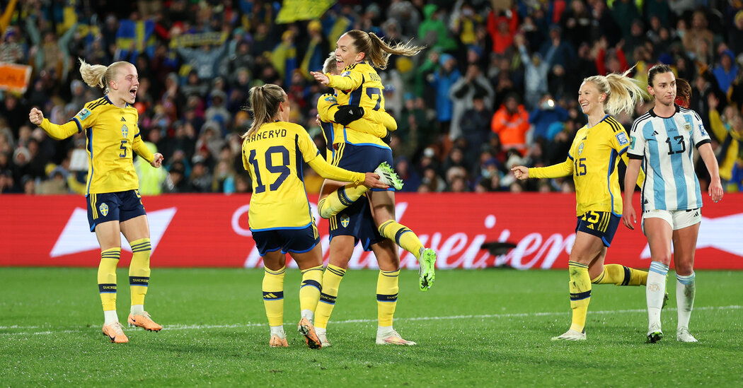 Propelled by a second-half header by Rebecka Blomqvist and a late penalty kick by Elin Rubensson, Sweden earned a 2-0 victory in Hamilton, New Zealand, that sent Argentina out of the World Cup and the Swedes into a highly anticipated round of 16 game against the Americans on Sunday in Melbourne.