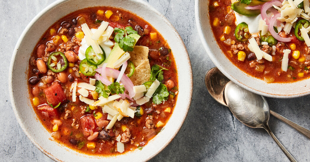 So I’m on the lookout for recipes that give me hygge highs while still making the most of the kindercore-colored tomatoes, corn and peppers at the market. Naz Deravian’s taco soup (above) hits that sweet spot, delivering both comfort and brightness in a bowl. Right now I’ll make it with fresh corn and poblanos, heaping diced tomatoes on top along with the crushed tortilla chips, grated Cheddar and pickled red onions. I’ll eat it outside with the sunshine on my face and a cardigan on my shoulders, and congratulate myself on having it all.