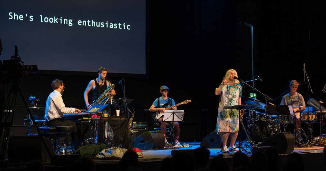 Walshe’s text moves fast, and the music moves at the speed of thought. One moment, her vocals may seem to be celebrating internet memes — or the “minor characters” who become “main characters” for a day on social media. But before long, she’s chiding the world, or herself, for ignoring weightier matters. The music rockets back and forth between amiable, unhurried rhythms and black-metal blast beasts; between ad-jingle saxophone riffs and free-jazz skronk; between even-keeled, Eddie Van Halen-style finger-tapped motifs on electric guitar and less orderly plumes of distorted noise.