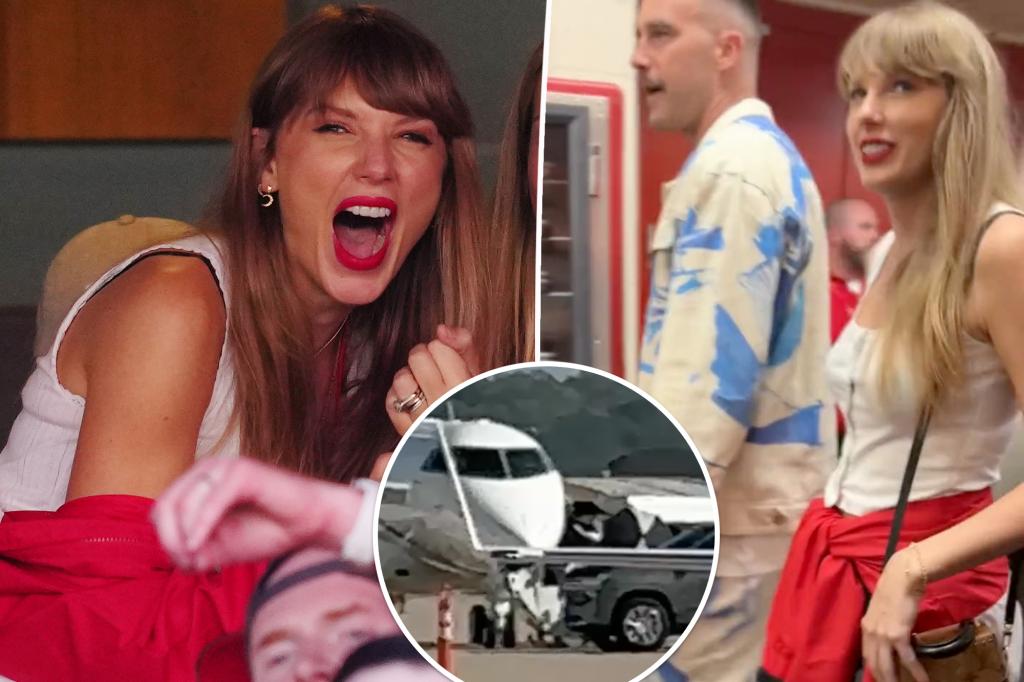 In a video exclusively obtained by Page Six, the “Cruel Summer” songstress, 33, was spotted arriving directly on the tarmac of the Kansas City International Airport in a silver SUV where her private jet awaited her.