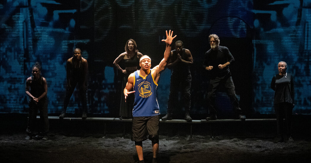 The poem is a melodious, sky-high tale of a basketball superstar born as a result of a celestial contest between the Greek and Yoruba gods of thunder, Zeus and Sango. But the stage adaptation, which opened on Monday, runs into some flaws that, while not fatal, strand this Nigerian writer’s work in the mortal realm.