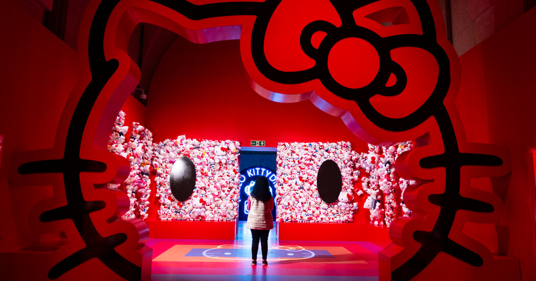 If these questions give off a strong smell of the seminar room, do not be cast down: There is plenty of fun, and truly adorable stuff, to be consumed. Just ask the group of girls who were giddily twirling around taking selfies in the Hello Kitty disco room on the morning that I visited. (The show, in fact, is sponsored by Sanrio, the Japanese company that created Hello Kitty, and is timed to coincide with her 50th birthday this year. She’s 50 years old! According to a sign at the show, she was born in London on Nov. 1, dreams of becoming a poet and is the height of five apples! She doesn’t have a mouth!)