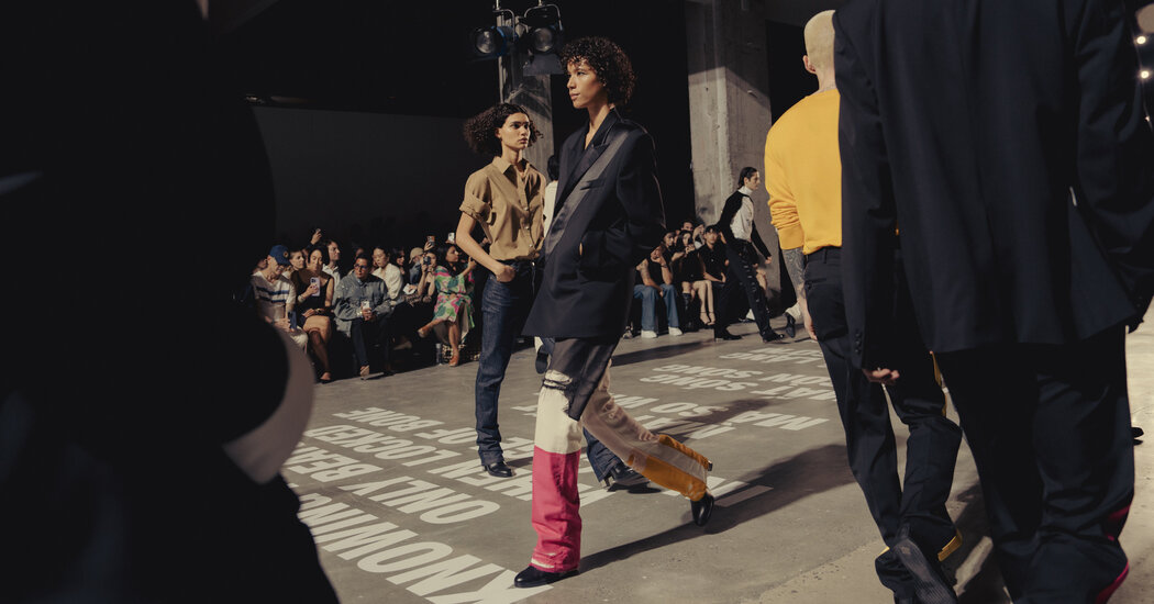 The cavernous space on the Lower East Side where the show was held was heaving with anticipation. A poem by Mr. Do’s friend, the writer Ocean Vuong, had been painted on the floor (sample verse: “Our clothes on the floor like stepped on flowers”), much as Mr. Lang had once plastered slogans from the artist Jenny Holzer around his store. Mr. Do had clearly done his research.