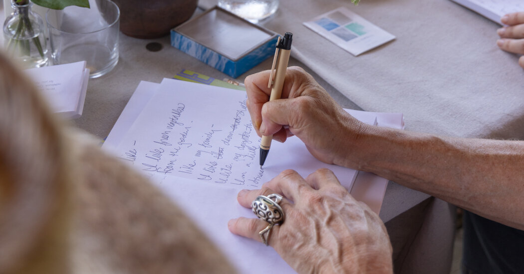 On a clear blue Friday in July, a group of 20 people from different professional backgrounds — a sports coach, a television executive, an owner of a public relations company — sat around a table stocked with nuts and fruit in Montauk, N.Y., to learn how to journal.