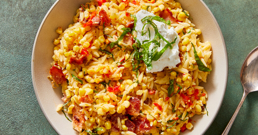 I thought I’d tried every way there was to cut the kernels off an ear of corn. I braced the ears in a Bundt pan and sunk them into a deep bowl; I held them horizontally and I held them vertically. I even tested out some of those single-task corn-slicing tools, none of which did any better than a cutting board and a knife. But until I saw Samantha Seneviratne’s new recipe for creamy one-pot orzo with corn and bacon, it had never occurred to me to pull out the box grater.